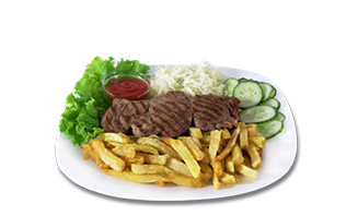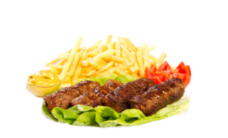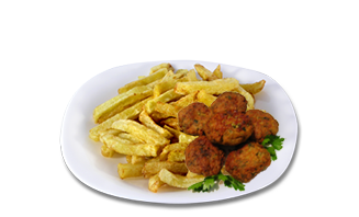4 Chifteluțe 150gCartofi prăjiți Salată de varză Chiflă