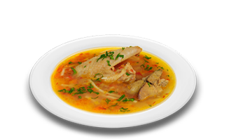 Ciorbă de pui Cabanos Cartofi la cuptor Salată Chiflă