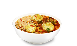 Ciorbă de perișoare Pui Shanghai Cartofi țărănești Salată Chiflă